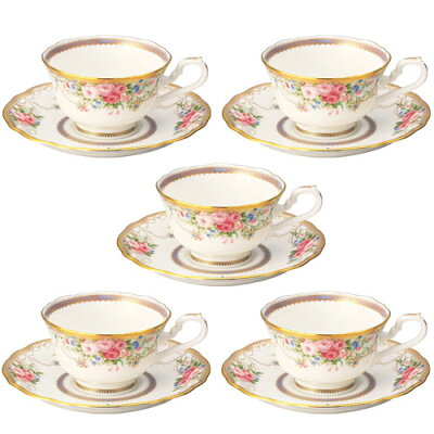 Noritake (ノリタケ) 日本製 アフロディーテ ティー・コーヒーカップ&ソーサー 5客セット 【ギフト 出産内祝 結婚内祝 結婚式引出物 快気祝 法事引出物 各種内祝 引出物 景品】
