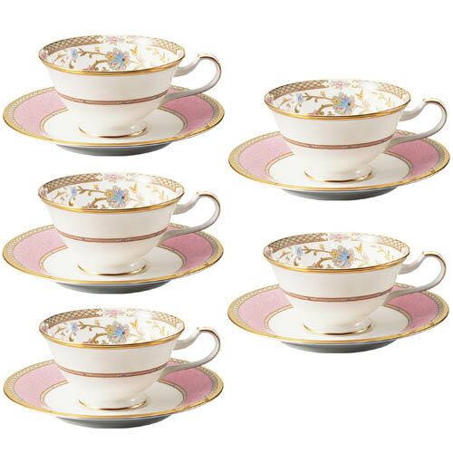 Noritake (ノリタケ) 日本製 ヨシノ ティー・コーヒーカップ&ソーサー 5客セット (ピンク) 【ギフト 出産内祝 結婚内祝 快気祝 お返し 各種内祝 引出物】