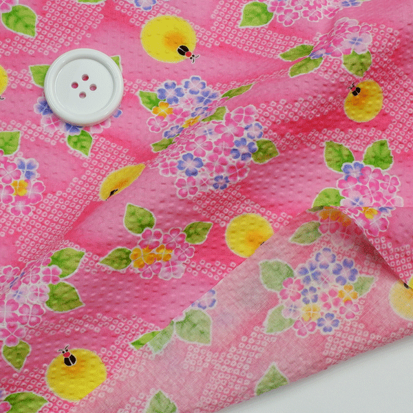 リップル 生地 和柄ネイビー 蛍 アジサイ 112cm 幅 ポコポコ仕上げの涼しい コットン 50cm単位 はかり売り
